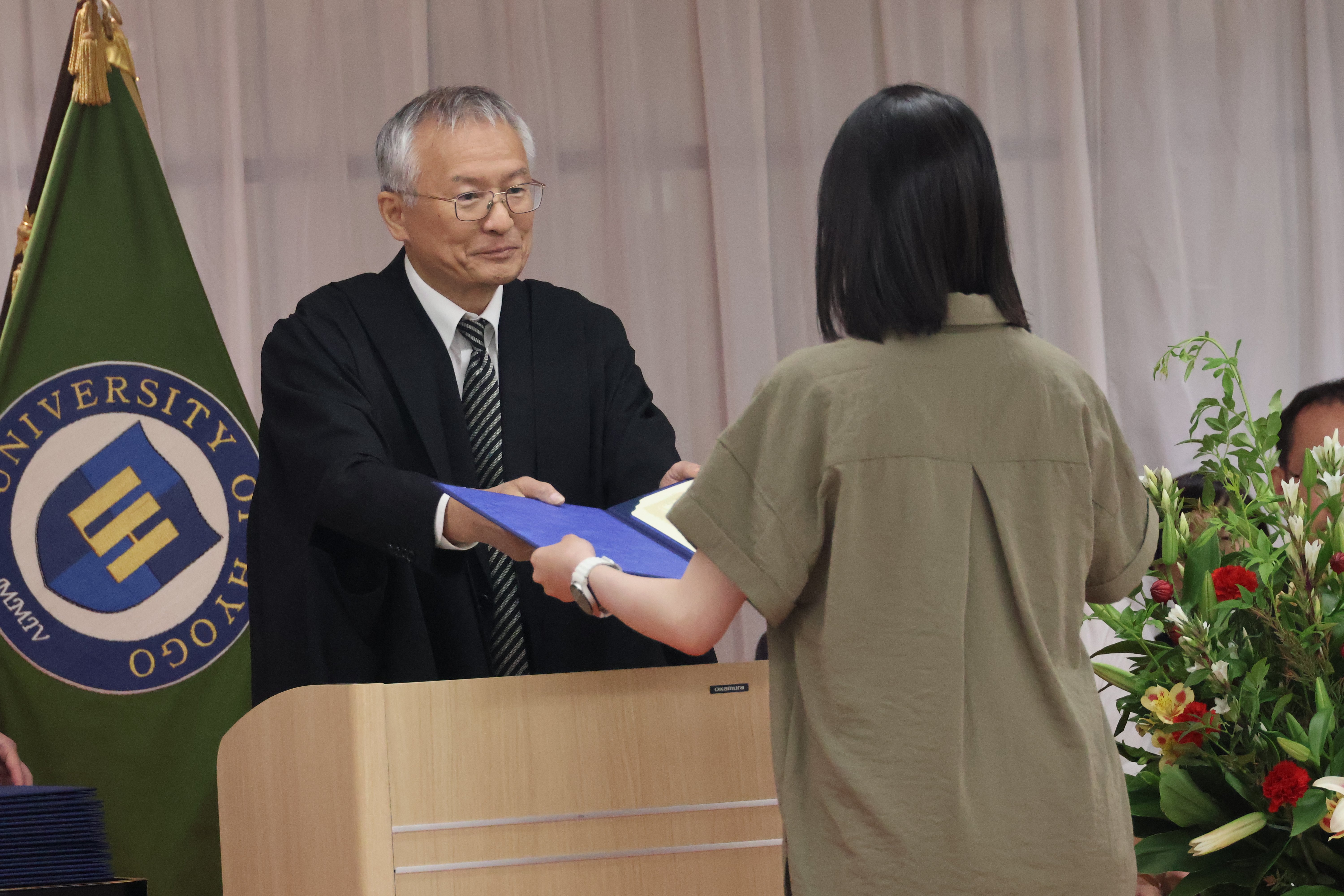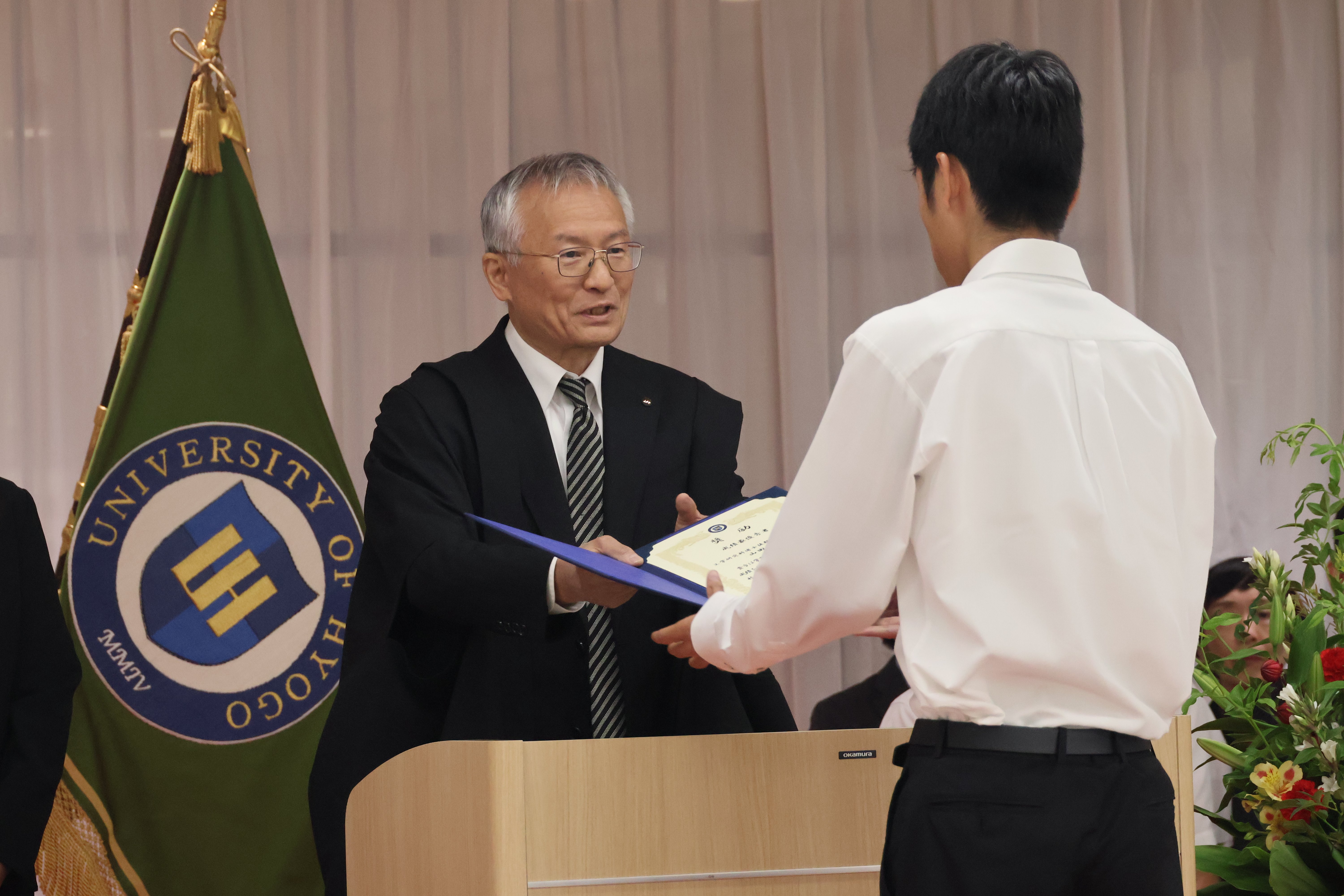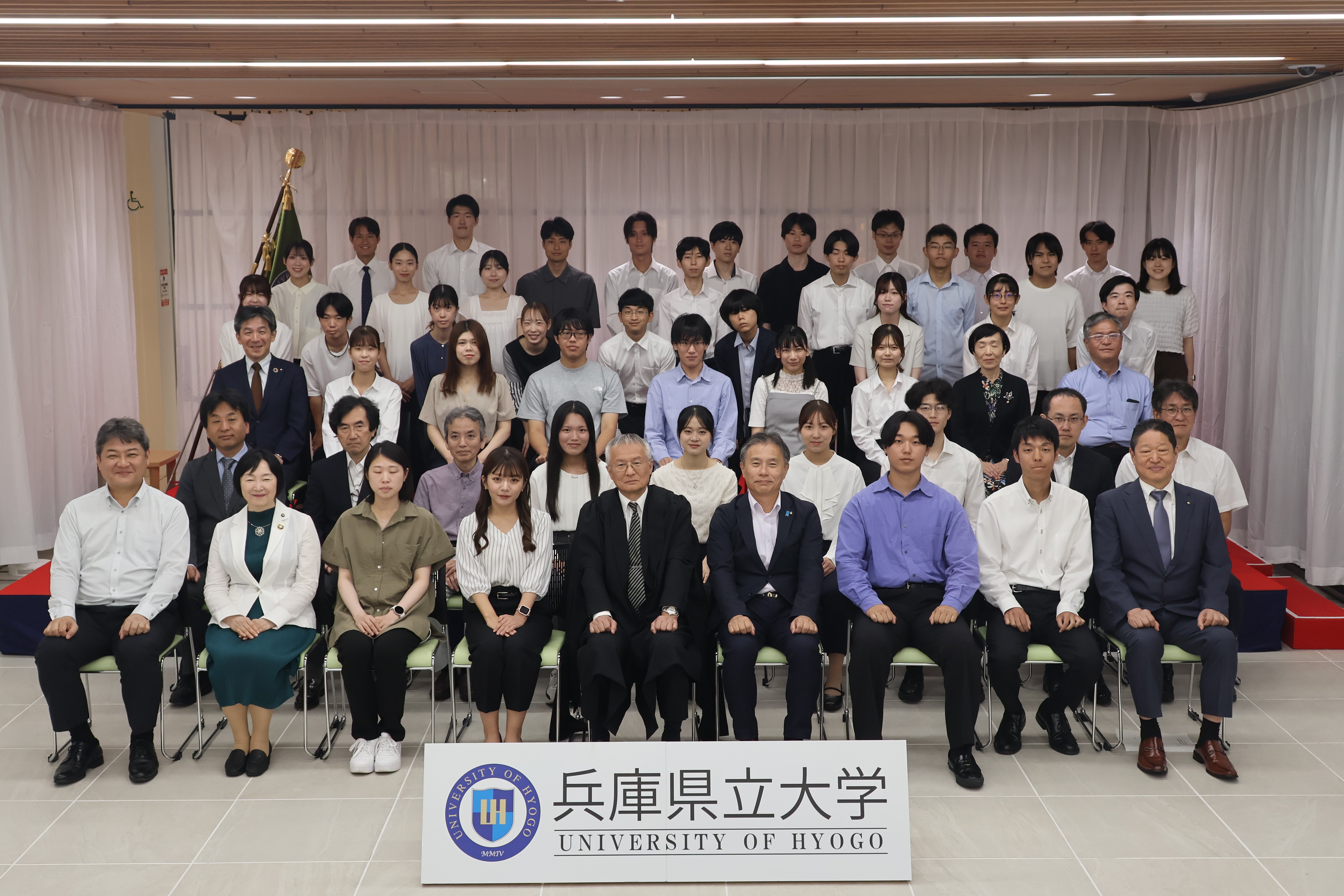 神戸商科キャンパスのi-Squareにおいて、採択者に対して髙坂学長から奨励状を贈呈し、さらなる飛躍を期待したところです。