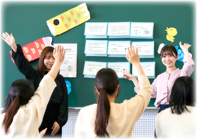 養護教諭養成課程は選択制で、毎年10名を定員としています。養護教諭は学校教職員の一員として、児童生徒のヘルスプロモーションを導く専門職です。1年生から養護教諭になるために必要な科目を講義・演習・実習を通して履修します。1年次より履修を開始し、4年次に3週間の学校実習を行い養護教諭の役割を実践的に学んでいきます。