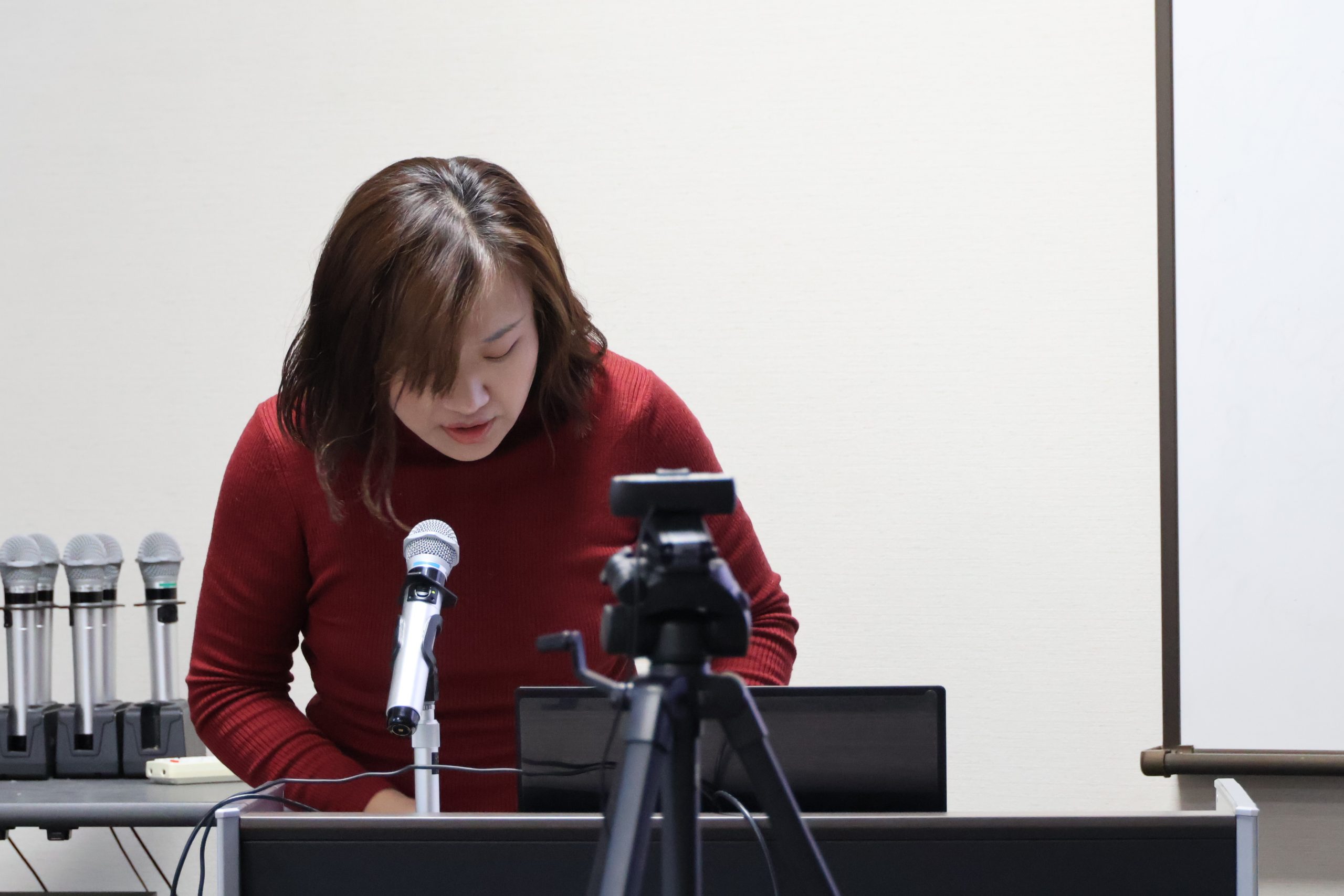 交流終了後はそれぞれのグループより、代表の先生に交流の中でどんな話題が出たかを発表いただきました。話題提供にあった学生サポートの話題から、仕事と家庭の両立などの話題があがったそうです。最後に閉めの挨拶をもって終了いたしました。対面参加の皆さんは終了後も残ってお話されている先生が多く、良い交流の機会になりました。