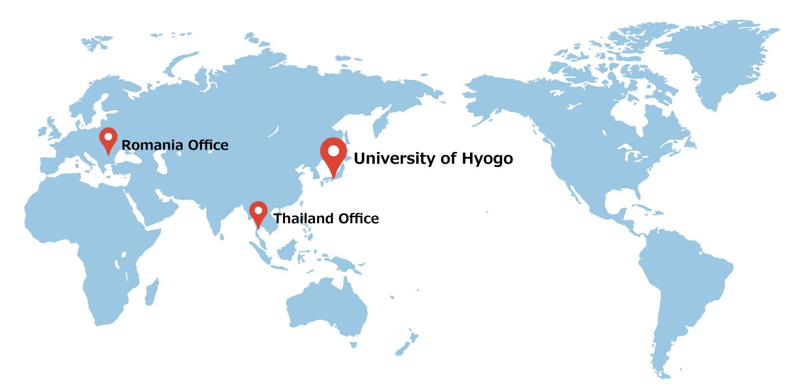 The University of Hyogo has established overseas offices to promote educational and research collaboration with partner universities under academic exchange agreements, to facilitate the dispatch of students from the University and the recruitment of international students, and to expand human resource development through industry-academia collaboration with local Japanese-affiliated companies.