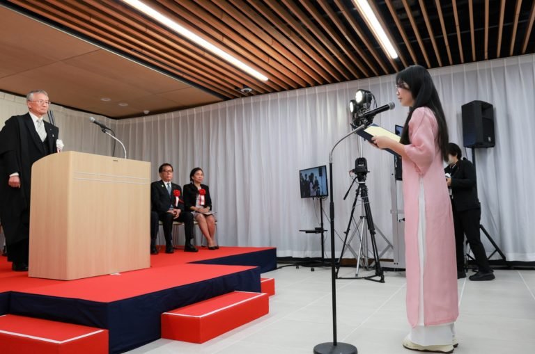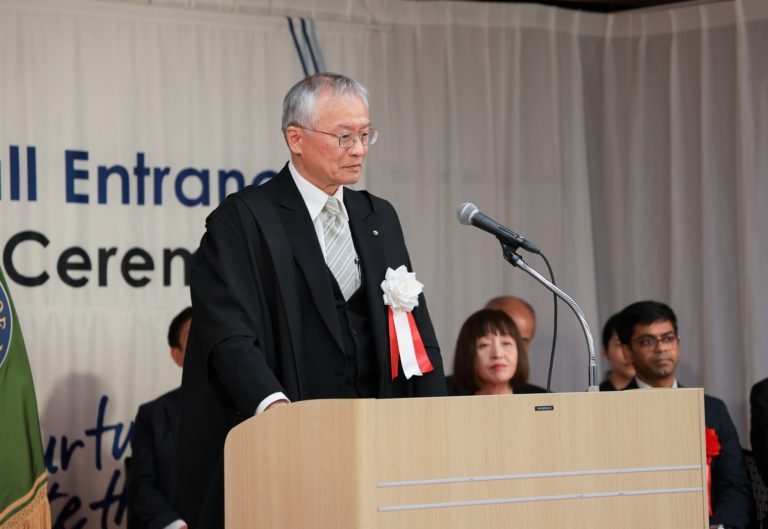 The entire ceremony was conducted in English, including the congratulatory address delivered by President Makoto Kosaka, as well as messages from guests of honor.
