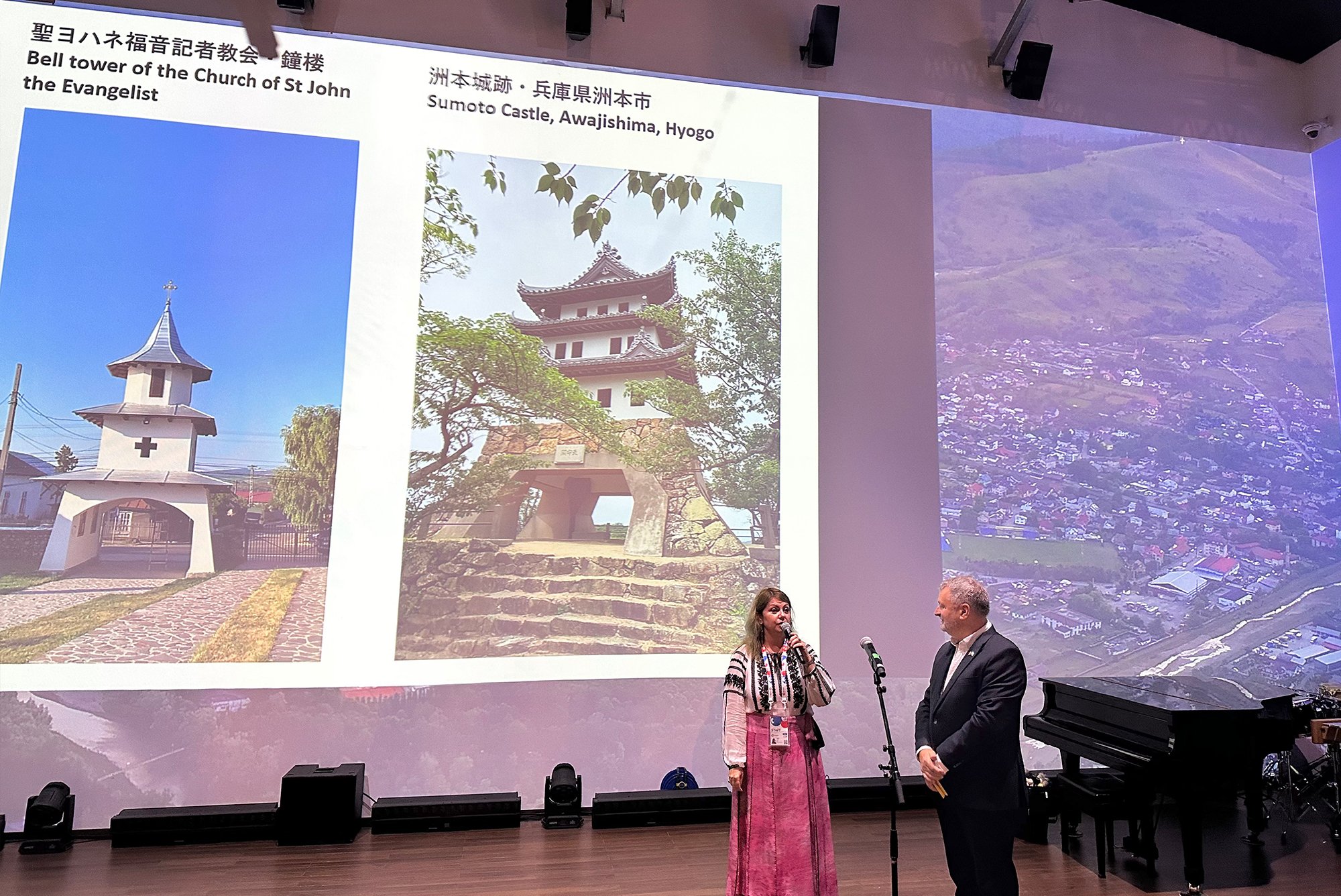 「イオン・ミンク」建築大学のモイチャヌ・マリアン学長は、ルーマニアにおける建築および建築教育の方向性について講演しました。また、兵庫県立大学環境人間学部の宇高雄志教授は、ルーマニア館のデザインと建設について、日本の視点から見た考察を紹介しました。