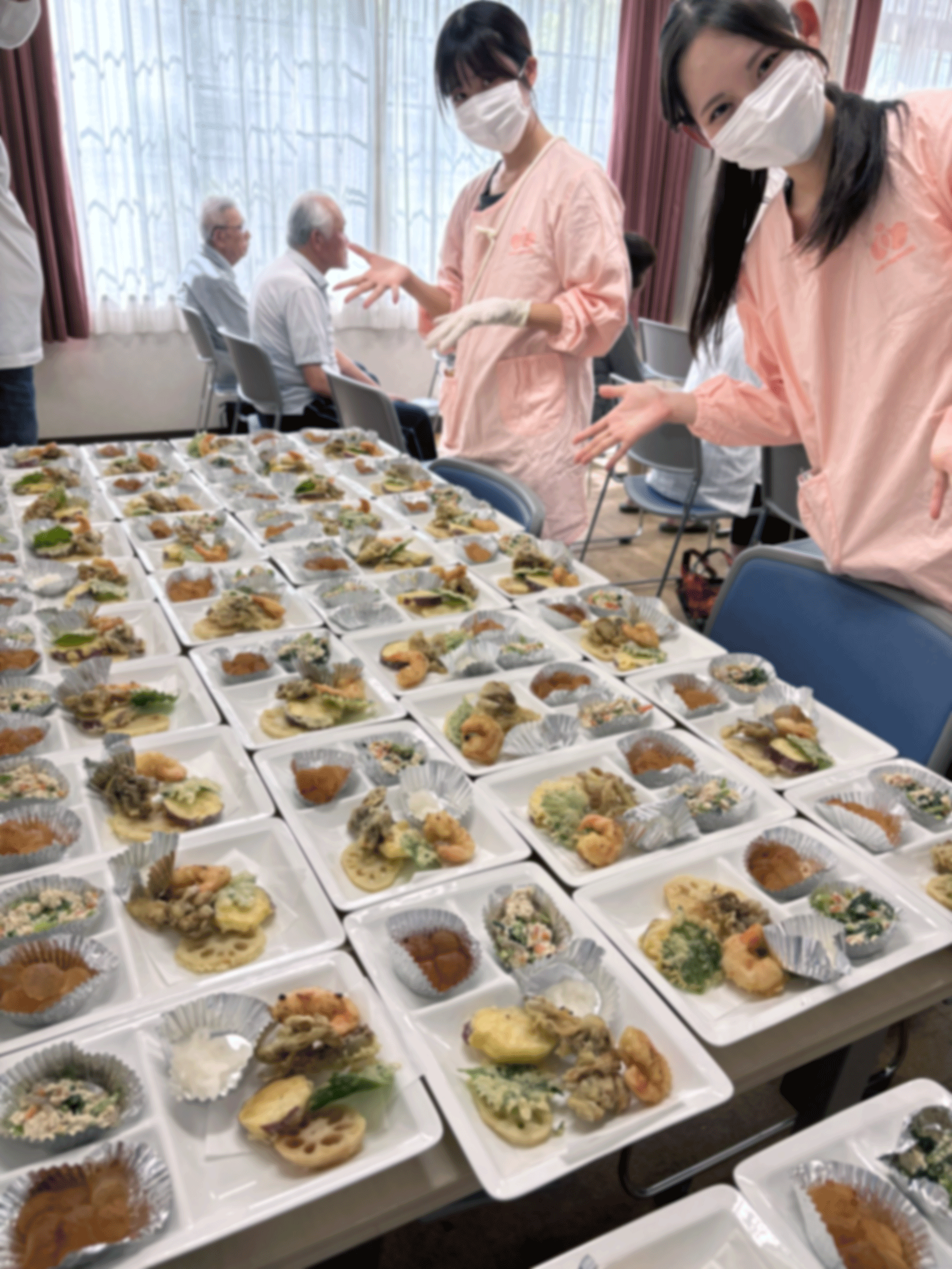 学園東町で開かれている単身高齢者向けの食事会に学生3名がボランティアとして参加し、食事の準備をお手伝いしました。