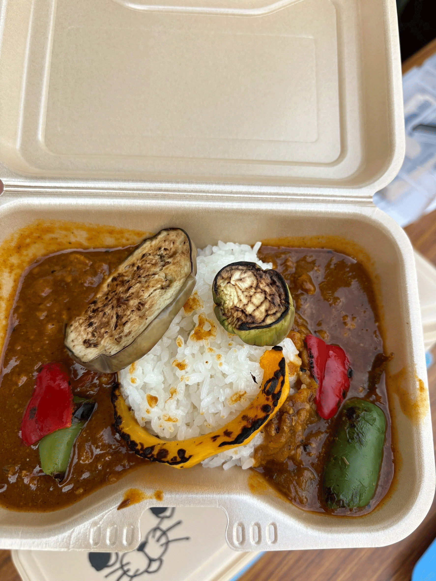 西神中央駅前で開催された「ウェルマル」に学生5名で出店し、西区の農家さんから直接仕入れた規格外野菜を含むこだわりの野菜をふんだんに使ったカレーを販売しました。