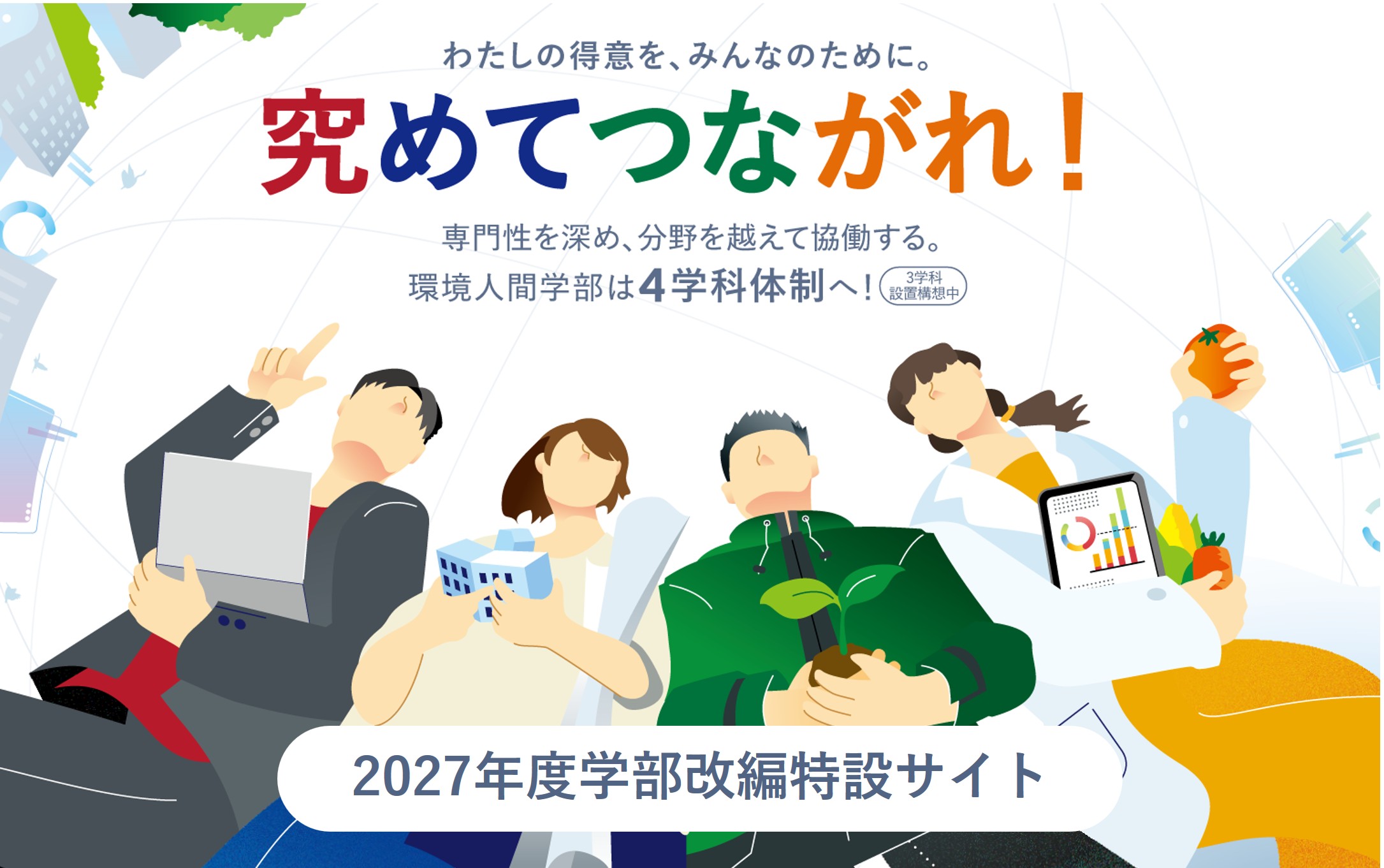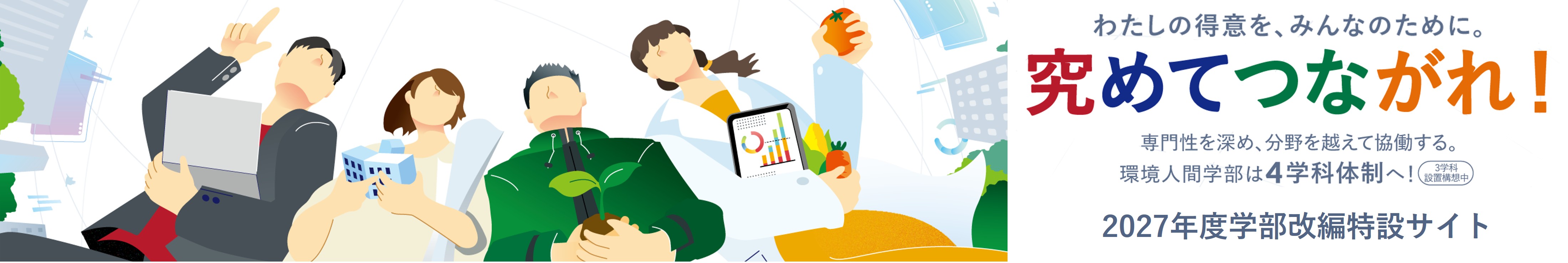 | 2025.7.3 | 令和9年度環境人間学部改編(構想中)に伴う入学者選抜の変更等について【予告】 |