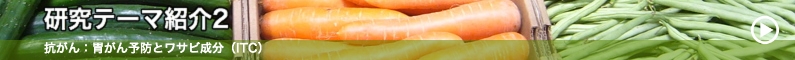 ワサビといえば、刺身に付けるあれ、です。その機能性といっても、、という方もおられるでしょう。でも、最近とても注目されている機能性食材なのです。そもそも、ポールタラレー博士が、胃がんにブロッコリースプラウト(新芽)にスルフォラファンが効く、という報告をしたことから始まります。スルフォラファンって何? それは、ITCと呼ばれる構造をもつ物質です。実はワサビにも(スルフォラファンではありませんが似た物質が)たっぷり含まれているのです。ITCはN=C=Sと呼ばれる反応性に富む構造を持っていることが特徴です。